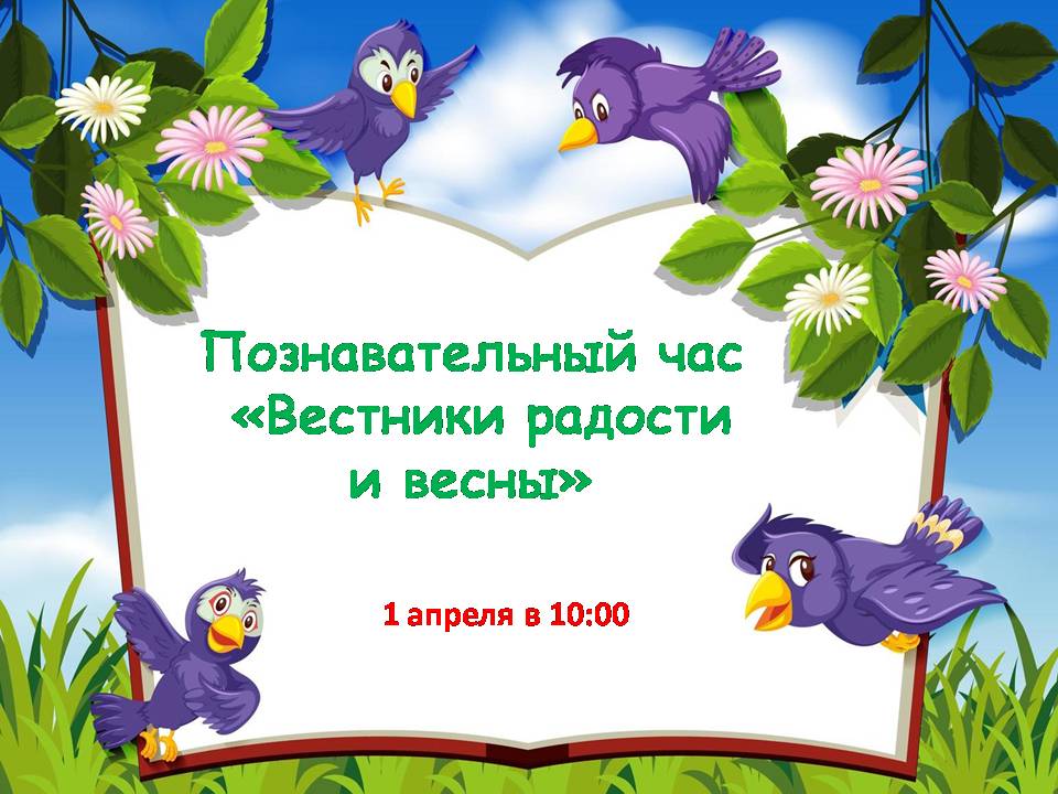 В этот день в детской библиотеке библиотечно-информационного центра имени Е. П. Смургиса состоится познавательный час «Вестники радости и весны». Юные читатели узнают, почему появился этот праздник, познакомятся с интересными фактами о птицах, ответят на вопросы,требующие смекалки и сообразительности.